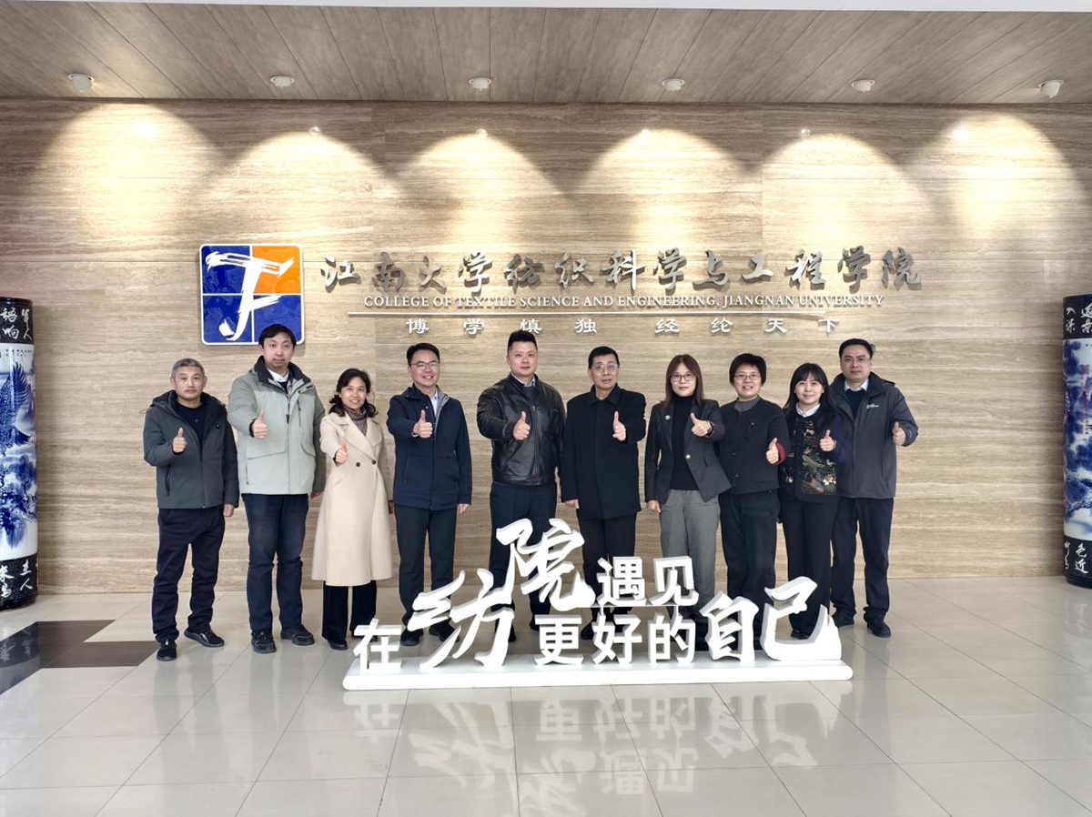 签约仪式前,3L集团周峰总经理一行6人在宋鋆老师的引导下,参观了江南大学针织中心,深入了解中心在纺织材料、结构设计与功能整理等方面的科研设施与成果积累,展现了高校科研的深厚底蕴,让企业对双方的未来合作充满期待。